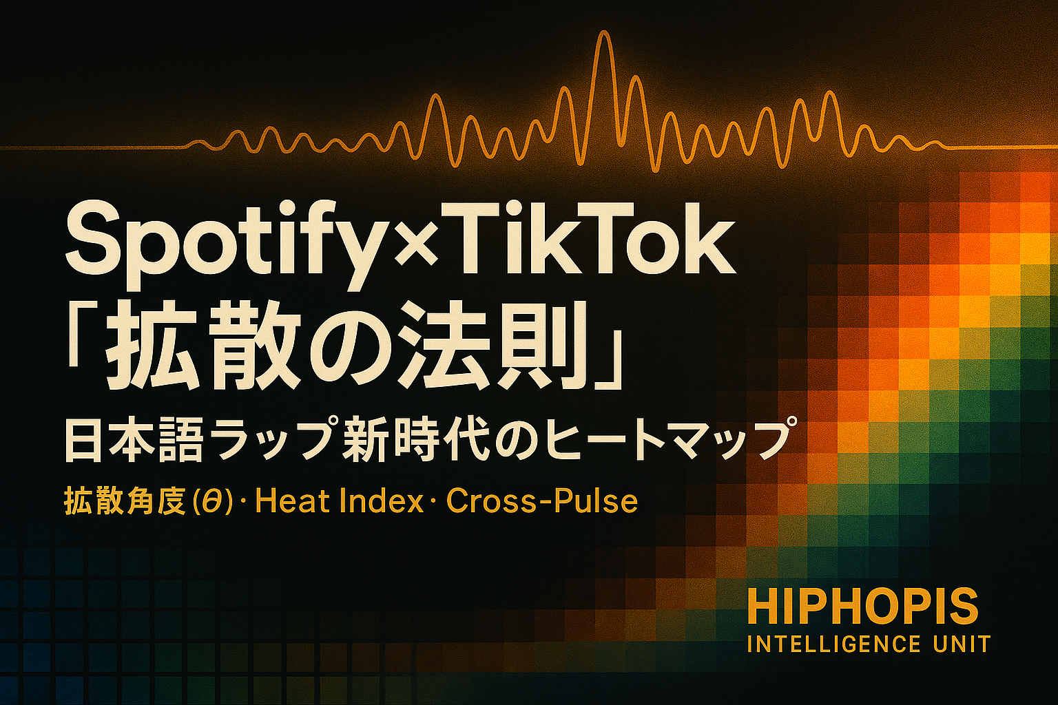 当サイト「HIPHOPCs Intelligence Unit」は、この新しい拡散構造を解明するため、公開データを一次分析し、日本語ラップのトレンドを可視化する独自の「拡散ヒートマップ」を開発しました。本稿では、このヒートマップが示す3つの主要な拡散パターンと、アーティストやレーベルが取るべき実践的な戦略的示唆を、外部の専門家の知見も交えながら提示します。