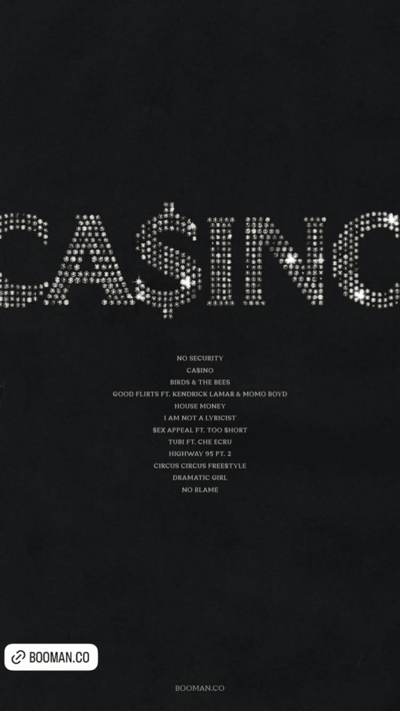 前作『The Melodic Blue』は全米プラチナ認定。そこから4年以上のブランク。Kendrick Lamar参加。12曲のコンパクト構成。アルバム発表と同時にワールドツアー「The Ca$ino Tour」(2026年4月〜9月、北米+欧州約40公演)も発表されてます。6月のGovernors Ball、8月のAll Points East(ロンドン)ではTyler, the CreatorやClipseと共演予定。チケットのプレセールはCash App Card連携で、2月11日から始まってます。