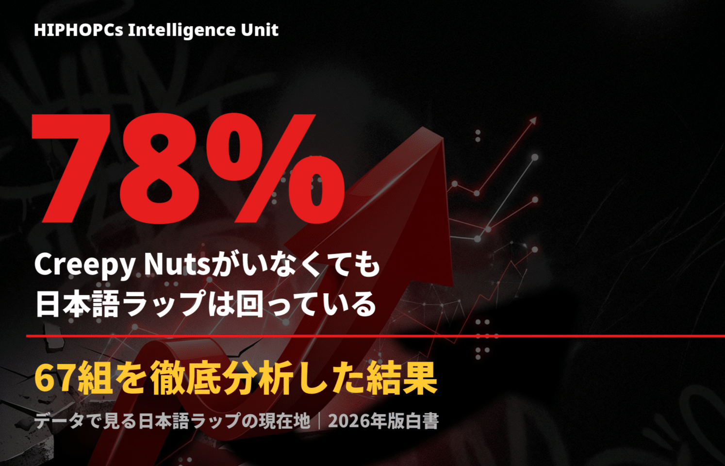 HIPHOPCs Intelligence Unitについて HIPHOPCsは日本語ラップシーンを定点観測するメディアとして運営。データジャーナリズムの手法を用い、一次ソースに基づく分析記事を発信している。本レポートは編集部の独自調査に基づき、広告主からの影響を受けずに作成されている。