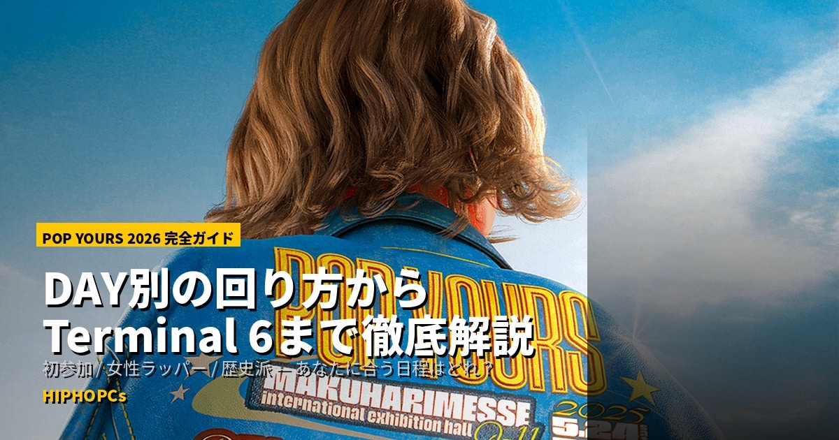 本稿では、タイムテーブル・注目カード・新ステージ「Terminal 6 STAGE」の構造的意味・オリジナル楽曲・YouTube生配信情報・現地での回遊設計まで、当日までに知っておくべきすべてを整理する。HIPHOPCsが3月に公開した構造分析記事「POP YOURS 2026はフェスを超えたのか?」の続編として読んでほしい。