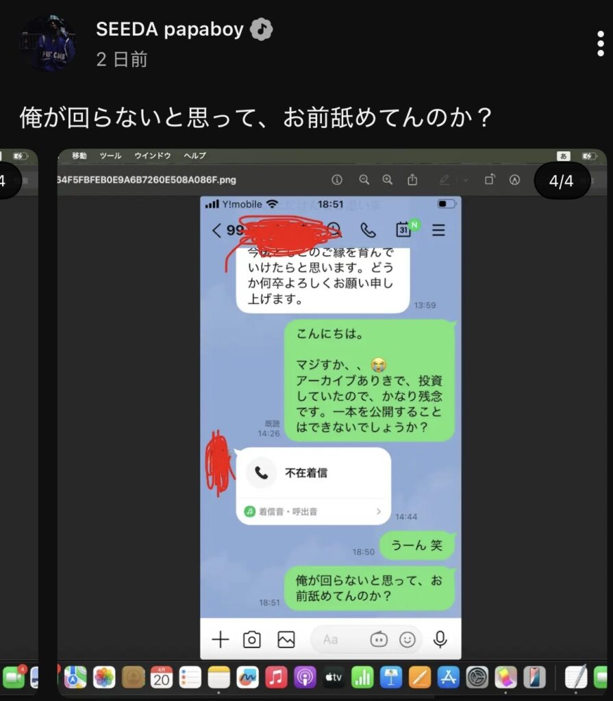 SEEDAが公開した4枚のLINEスクリーンショットから見える経緯